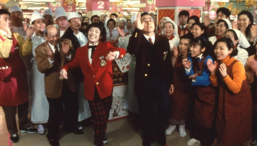 在《大病人》与《寂静的生活》两部作品中尝试了突破自我的探索后,伊丹十三回归自己最擅长的“女人”系列喜剧,打造了这部爆笑之作《超市之女》。影片描写了一个家庭主妇与超市的伙伴们协力对抗擅长低价营销却伪造保质期、鱼目混珠的不良商家的故事。片中揭露的各种弄虚造假手段让人忍俊不禁之余更是细思极恐,因此引发观影热潮,荣登年度票房榜第五名。数年后,日本真的爆发了一系列引起广泛关注的食品安全事故,让人不得不惊叹于伊丹十三超前的社会问题意识与敏锐眼光。