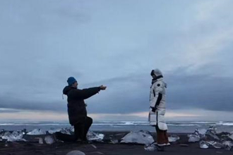 视频中,孙丞潇求婚成功后抱住了金莎,两人在唯美浪漫的冰岛钻石沙滩上拥吻。